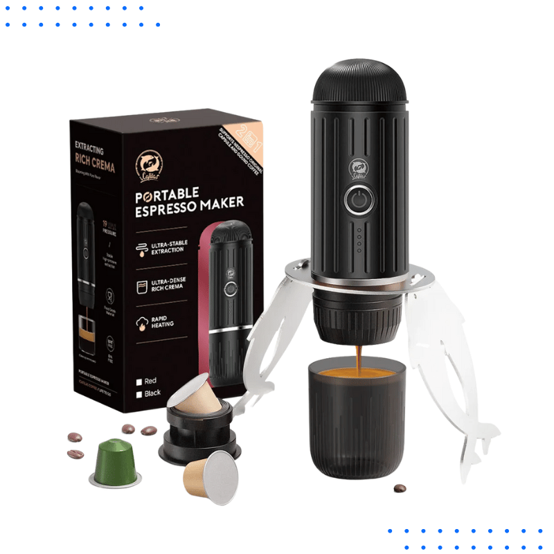 Enjoy rich espresso anywhere with this rechargeable portable coffee maker. Compatible with ground coffee or capsules, it delivers up to 19 bars of pressure — perfect for travel, hiking, camping, or even at your desk.